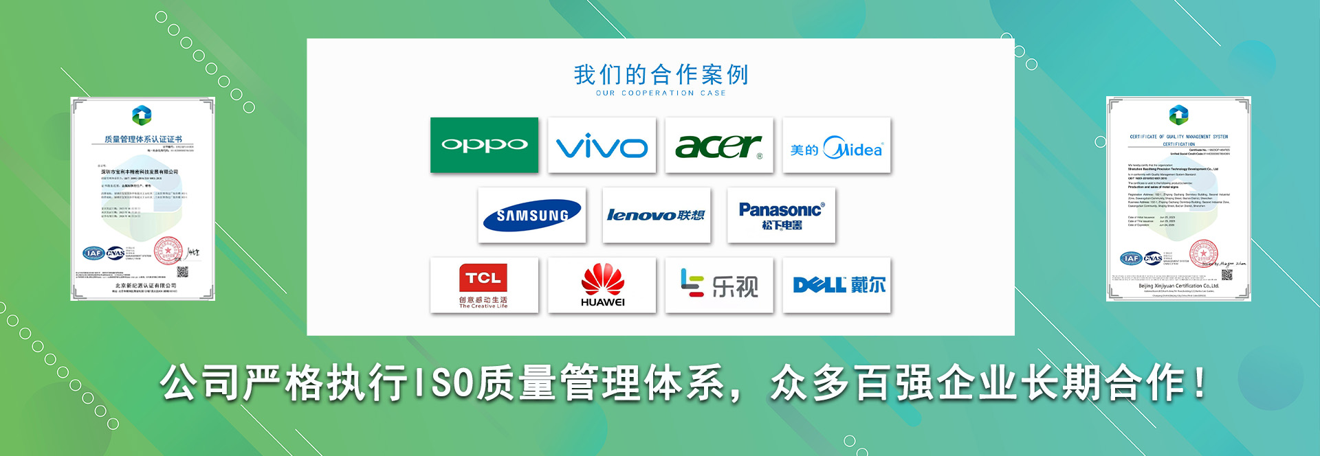 深圳市寶利豐精密發(fā)展有限公司成立于2013年10月,屬于臺(tái)灣、大陸合資企業(yè),位于深圳市寶安區(qū)沙井街道西環(huán)路1007號(hào),廠房面積1800㎡,員工管理團(tuán)隊(duì)130多人。致力于各類標(biāo)牌銘板,從設(shè)計(jì)、生產(chǎn)一條龍服務(wù)。
