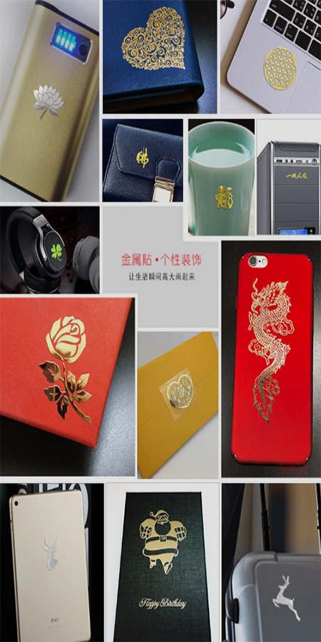 金屬貼紙應(yīng)用范圍很廣,平整表面的地方都可粘貼牢固,而且使用簡單方便。